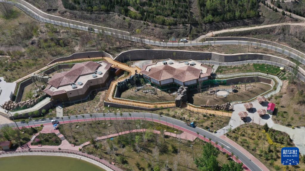 這是4月25日在蘭州野生動(dòng)物園拍攝的熊貓館全景(無(wú)人機(jī)照片)。