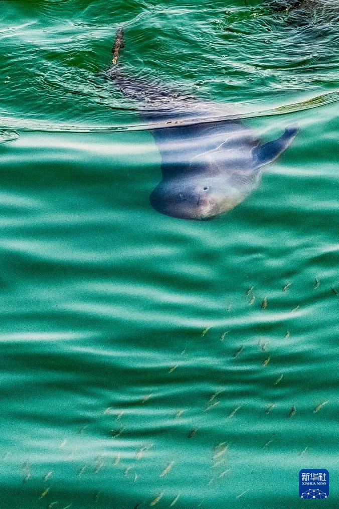 2023年2月19日,在湖北宜昌市江邊,長(zhǎng)江江豚在水中捕食。