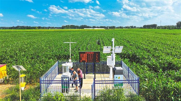 7月30日,山東省聊城市東昌府區(qū)侯營鎮(zhèn)高標(biāo)準(zhǔn)農(nóng)田物聯(lián)網(wǎng)監(jiān)測站,技術(shù)人員正在檢查智能農(nóng)業(yè)監(jiān)測設(shè)備運行情況。