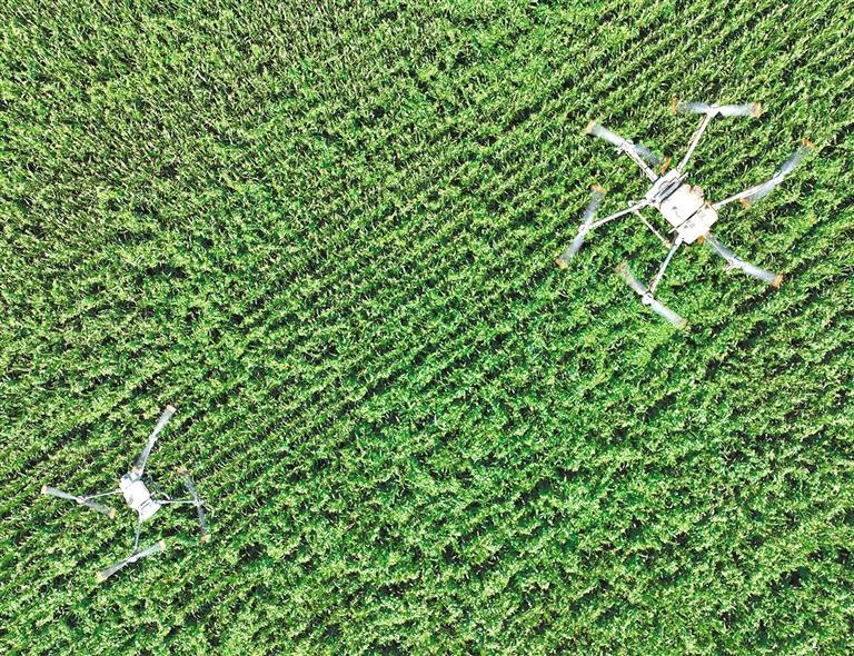 8月29日,河北省隆堯縣北樓鄉(xiāng)祥農(nóng)合作社玉米種植基地,無人機在噴灑農(nóng)藥。潘志方攝(中經(jīng)視覺)