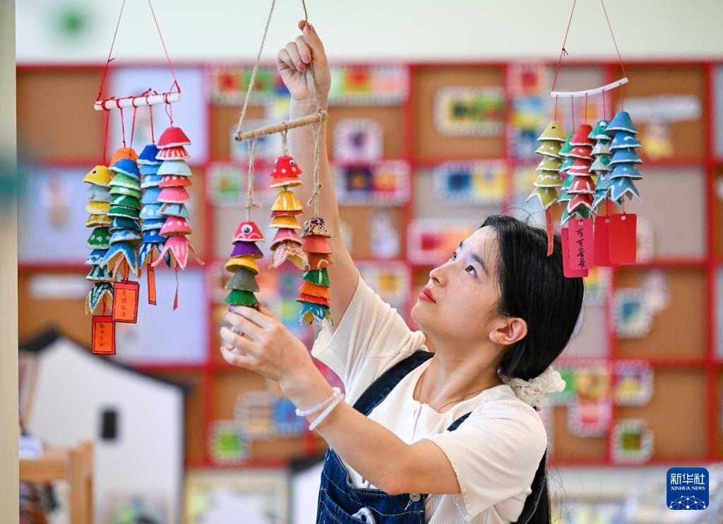 8月30日,浙江省寧波市鎮(zhèn)海區(qū)寶山幼兒園的老師在教室整理教具。
