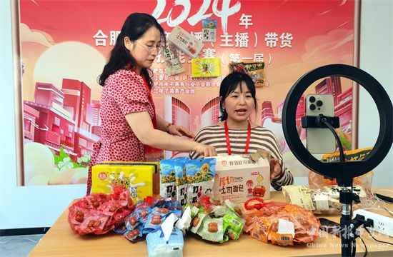 2024年9月6日,安徽省合肥市總工會舉辦電商直播帶貨職業(yè)技能競賽,全市各縣區(qū)22名參賽選手匯聚廬江縣電商產(chǎn)業(yè)園,以各自所在地特色農(nóng)產(chǎn)品為主體,各顯神通,各展其能,帶“火”了合肥農(nóng)產(chǎn)品,鍛煉了合肥本土的電商隊伍。 (巢志斌 攝)