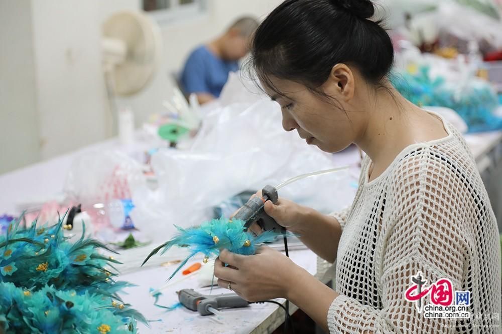 居民在“巧手夢(mèng)工坊”裝裱頭飾。中國(guó)網(wǎng) 楊楠攝影