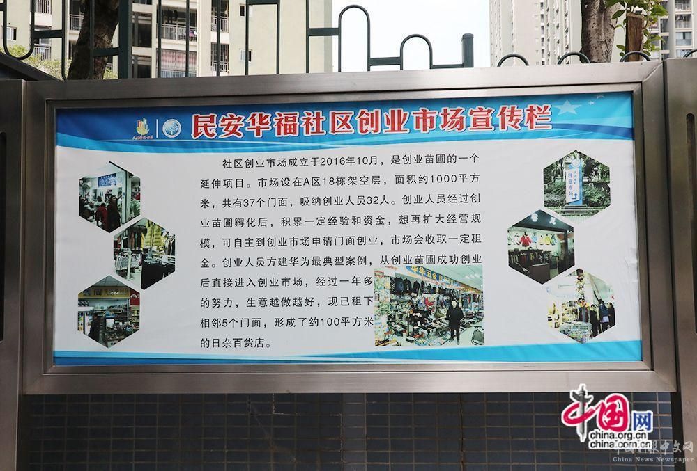 民安華福社區(qū)創(chuàng)業(yè)市場(chǎng)宣傳欄。中國(guó)網(wǎng) 楊楠攝影