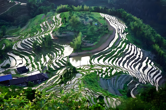 2005年,歐陽植勛首次到湖南省新化縣水車鎮(zhèn)紫鵲界旅游,迷上了這里的梯田風光。從此,他只要有閑暇時間,就自費從長沙坐火車到新化,然后多次輾轉(zhuǎn)到紫鵲界拍攝。在紫鵲界結(jié)識了奉友兵、羅益貞夫妻。奉友兵熱情好客,每次為歐陽植勛拍攝幫忙背相機等設(shè)備并帶路和陪同。為了拍好紫鵲界的四季風光,天沒亮歐陽植勛就起床去梯田景點選擇最佳拍攝點,然后蹲守拍攝最佳景觀,一次不行,二次、三次……甚至十多次,反正要拍出自己理想的圖片效果才肯放棄。冬天拍攝雪景,氣溫零下幾度,寒風呼嘯,背著相機設(shè)備,拄著拐杖都寸步難行。為了拍攝出好圖片,凍得全身顫抖,依然執(zhí)著不言放棄。如今,紫鵲界景區(qū)的各個景點,哪個地方是最佳拍攝位置,都深深地烙印在歐陽植勛的心里。在紫鵲界景區(qū)的每個角落,都有歐陽植勛留下的足跡和身影。