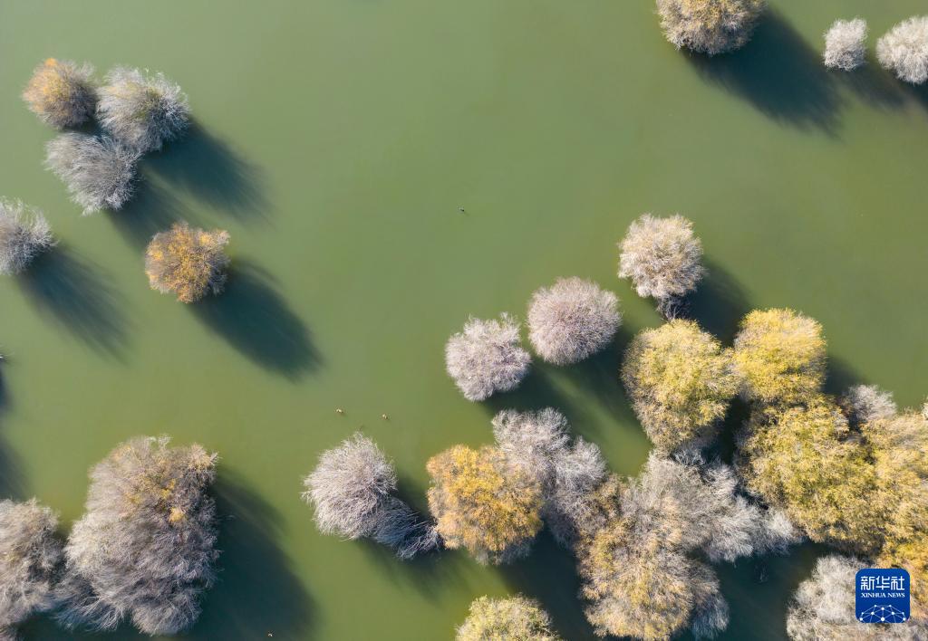 這是10月27日拍攝的甘肅省武威市民勤石羊河國家濕地公園一景(無人機照片)。
