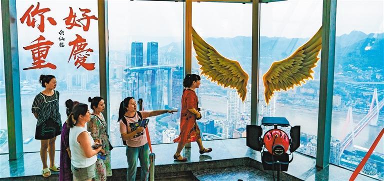 ①9月25日,游客在享有“西部之巔”稱號的重慶環(huán)球金融中心會仙樓觀景臺觀光。