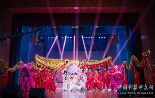 隨著鏗鏘激越、熱鬧歡快的鑼鼓聲,兩條錦色長龍?jiān)谖枧_上翻騰起舞,幾只威武雄獅緊隨其后,踢跳翻蹬,立臥滾抖,會場頓時(shí)歡騰起來,匯演就在這龍騰獅躍的場景中拉開了帷幕。