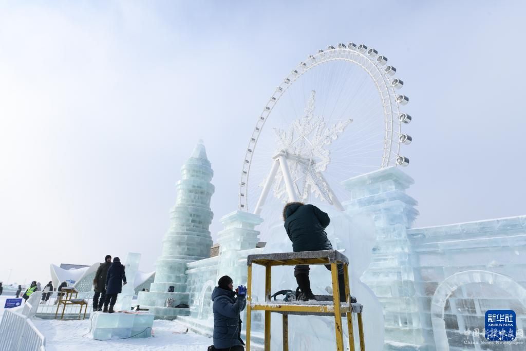 當(dāng)日,在哈爾濱冰雪大世界進(jìn)行的第35屆中國·哈爾濱國際冰雕比賽進(jìn)入第二天的賽程,來自世界各地的30余支參賽隊伍精心雕琢,盡顯哈爾濱冬季極寒之美。