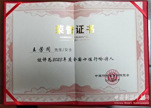 2024第十屆中國詩歌春晚北京總會場1月8日傳來喜訊,經(jīng)權(quán)威機構(gòu)推薦和專家們嚴(yán)格評定,著名絲路行吟詩人王芳聞榮獲2023年度十佳行吟詩人榮譽稱號。