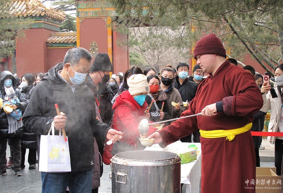1月18日,北京市東城區(qū),雍和宮“舍粥”活動現(xiàn)場。高志堅(jiān) 攝