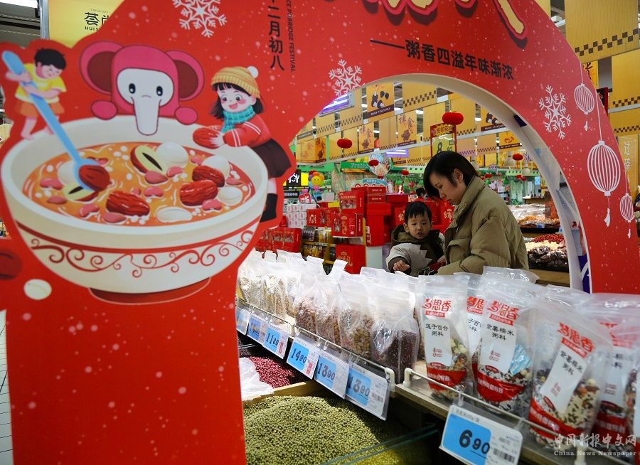 1月17日,山東省棗莊市市中區(qū)一家超市,市民在選購制作臘八粥的食材。王海楠 攝