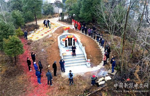 2024年1月20日,在安徽省合肥市廬江縣樂橋鎮(zhèn)大化村,廬江縣文物管理所與鰲山吳氏族人一起,為清人吳廷香墓園修繕完成舉行落成儀式及祭祀活動。
