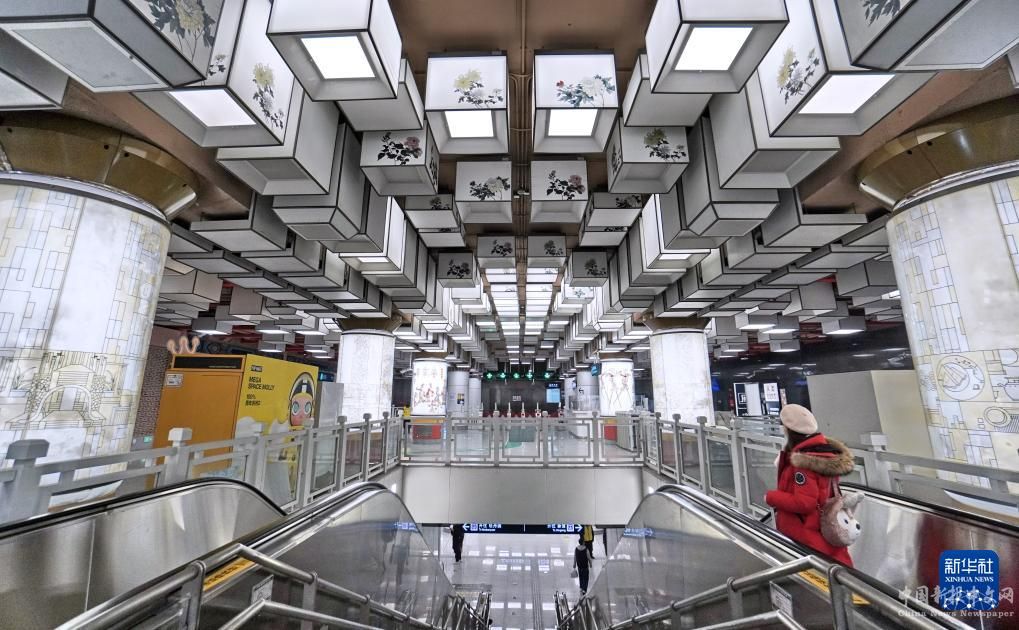 這是平安里地鐵站內(nèi)的中國風(fēng)燈飾(1月20日攝)。