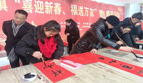 2024年2月2日上午,在歸陽鎮(zhèn)湘江碼頭涼亭處,由歸陽鎮(zhèn)人民政府、歸陽鎮(zhèn)工會委員會主辦,祁東縣書法家協(xié)會、歸陽鎮(zhèn)詩詞楹聯(lián)協(xié)會承辦的“喜迎新春,福送萬家”贈送春聯(lián)活動正在火熱進行。