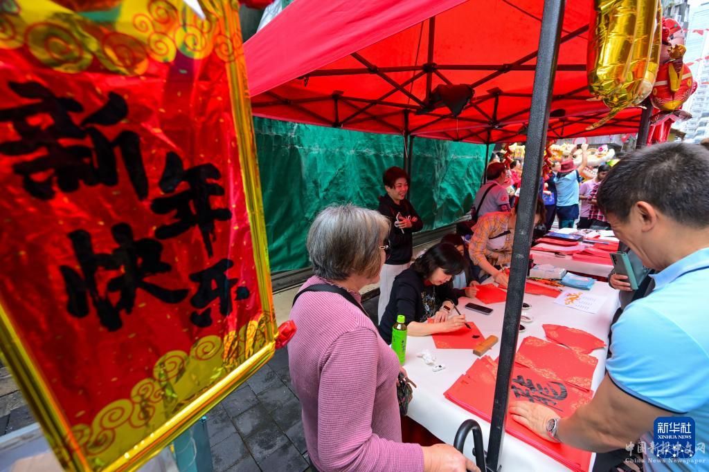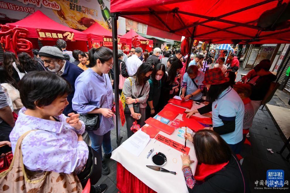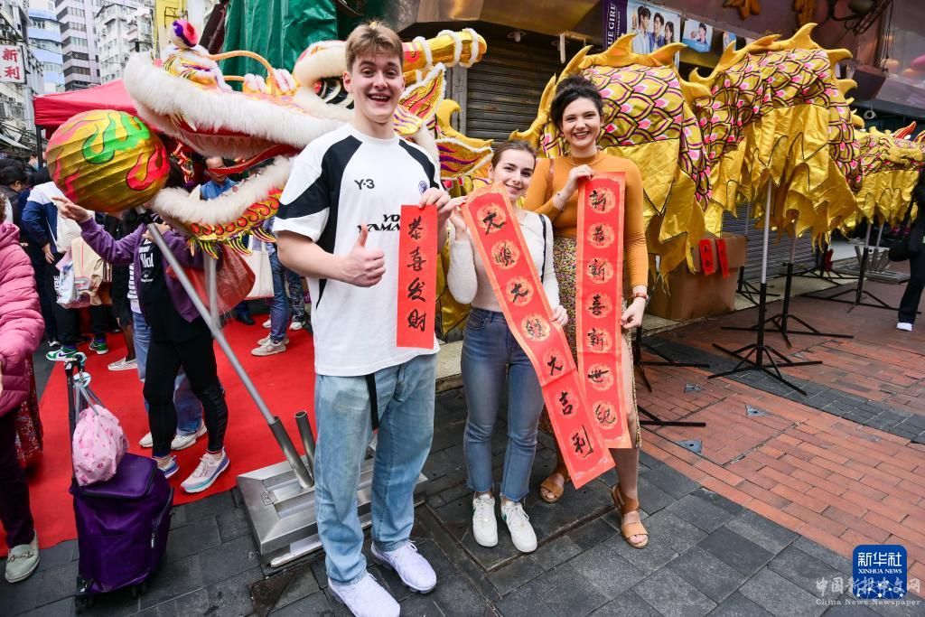 當(dāng)日,“龍騰香江 繽紛香港”新春文化活動(dòng)在九龍廟街舉行,龍獅表演、漢服秀、寫(xiě)春聯(lián)等活動(dòng)吸引了眾多市民和游客。