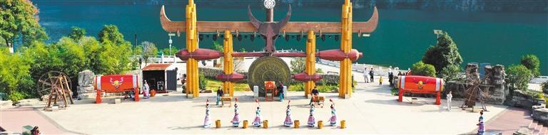 貴州省黔西市新仁苗族鄉(xiāng)化屋村文化廣場(chǎng),村歌舞隊(duì)在表演自創(chuàng)節(jié)目,向游客展示“中國(guó)民間文化藝術(shù)之鄉(xiāng)”的獨(dú)特魅力,豐富鄉(xiāng)村旅游的文化內(nèi)涵。