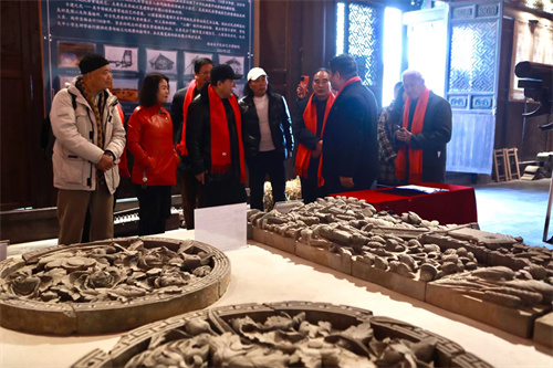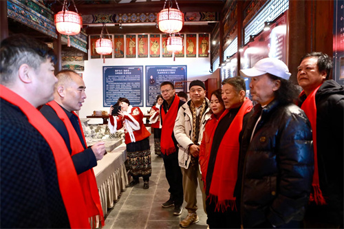 開幕式后,嘉賓們?cè)诠ぷ魅藛T的引導(dǎo)下,移步孫福堂宅院參觀展覽。
