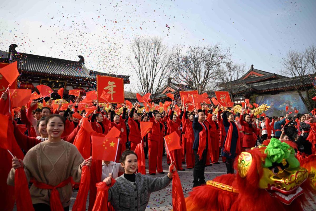 一大早,來自全國各地的上千名游客揮舞國旗,一起高唱《歌唱祖國》,在嘹亮的歌聲中開啟華清宮景區(qū)2024年甲辰龍年第一天。玉兔辭舊歲,金龍迎新春。華清宮作為一個歷代帝王溫泉行宮,與龍有著不解之緣。景區(qū)內有許多與龍有關的建筑,九龍湖、龍石舫、龍吟榭、御湯九龍殿等。