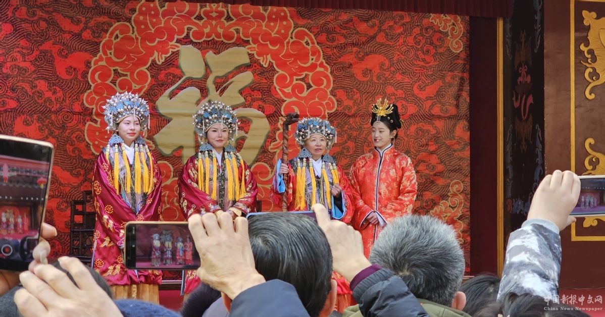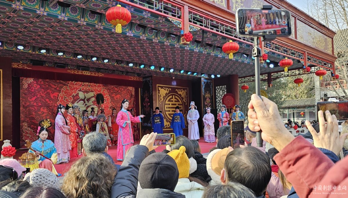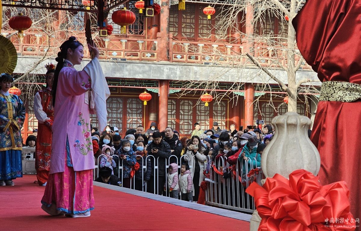 2月11日,在大觀園廟會(huì)上,市民游客欣賞“元妃省親”古裝演出。中國(guó)日?qǐng)?bào)記者 耿菲菲 攝