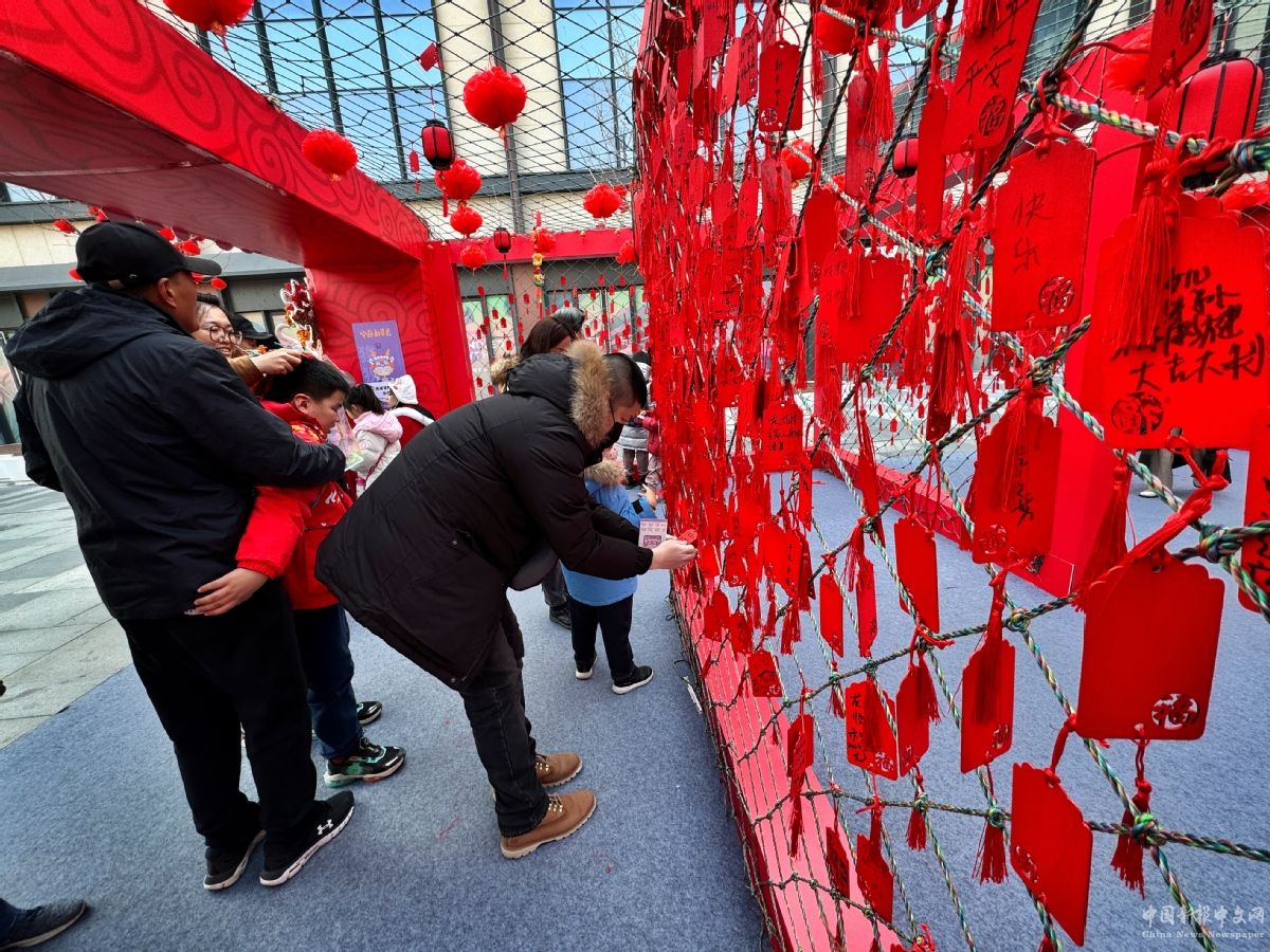 2月12日,在隆福寺新春市集上,市民寫(xiě)下新年期盼,掛在心愿之網(wǎng)上。中國(guó)日?qǐng)?bào)記者 杜漣猗 攝