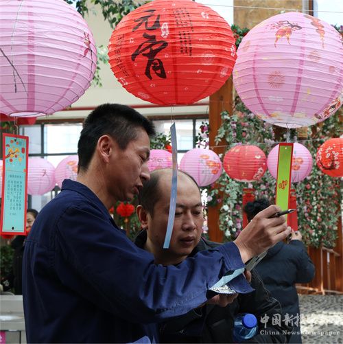 跨過潺潺流水的小橋,一串串火紅的龍年掛件、一張張精美的燈謎條,讓現(xiàn)場的元宵節(jié)氛圍瞬間“滿滿”。具有時代感的謎語涵蓋到民俗文化、古典詩詞、廉政建設(shè)、環(huán)境保護(hù)、安全生產(chǎn)等五大部分內(nèi)容,活動既能讓參與者展現(xiàn)學(xué)識,又能讓大家在游戲中感受到傳統(tǒng)文化的魅力和牢記安全生產(chǎn)的初心。