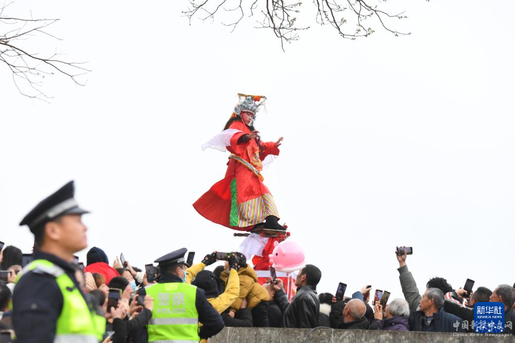 元宵佳節(jié),福建省連城縣羅坊鄉(xiāng)舉行獨具特色的水陸“走古事”慶元宵活動。羅坊鄉(xiāng)的“走古事”獨具特色,是當(dāng)?shù)乜图胰藶榧o(jì)念祖先不遠(yuǎn)萬里由中原遷徙而來舉辦的鬧元宵活動,走古事隊伍不但要在岸上狂奔競速,更需在水中逆流爭渡,展現(xiàn)先祖奮勇拼搏、力爭上游的創(chuàng)業(yè)精神,以教育、激勵后人,場面熱鬧非凡。