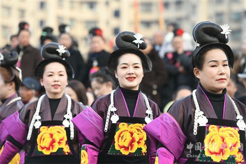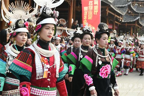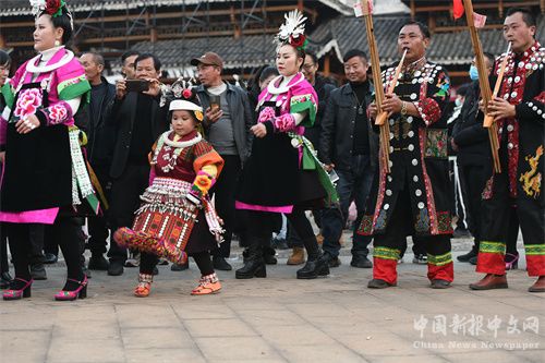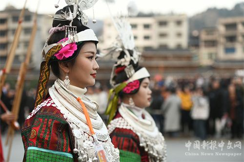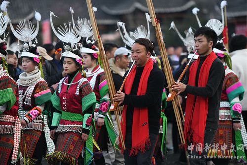 2024年3月2日,在貴州省凱里市舟溪鎮(zhèn),苗族群眾在參加“甘囊香”蘆笙節(jié)活動(dòng)。(楊仁海 攝)