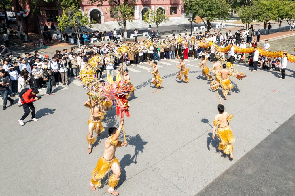 當(dāng)日是農(nóng)歷二月初二,湖南農(nóng)業(yè)大學(xué)開展“二月二”龍?zhí)ь^農(nóng)耕文化活動,組織學(xué)校龍獅俱樂部學(xué)生在校園內(nèi)巡游表演,并開展趣味農(nóng)耕運動游戲,讓師生盡情享受傳統(tǒng)文化的魅力和樂趣。
