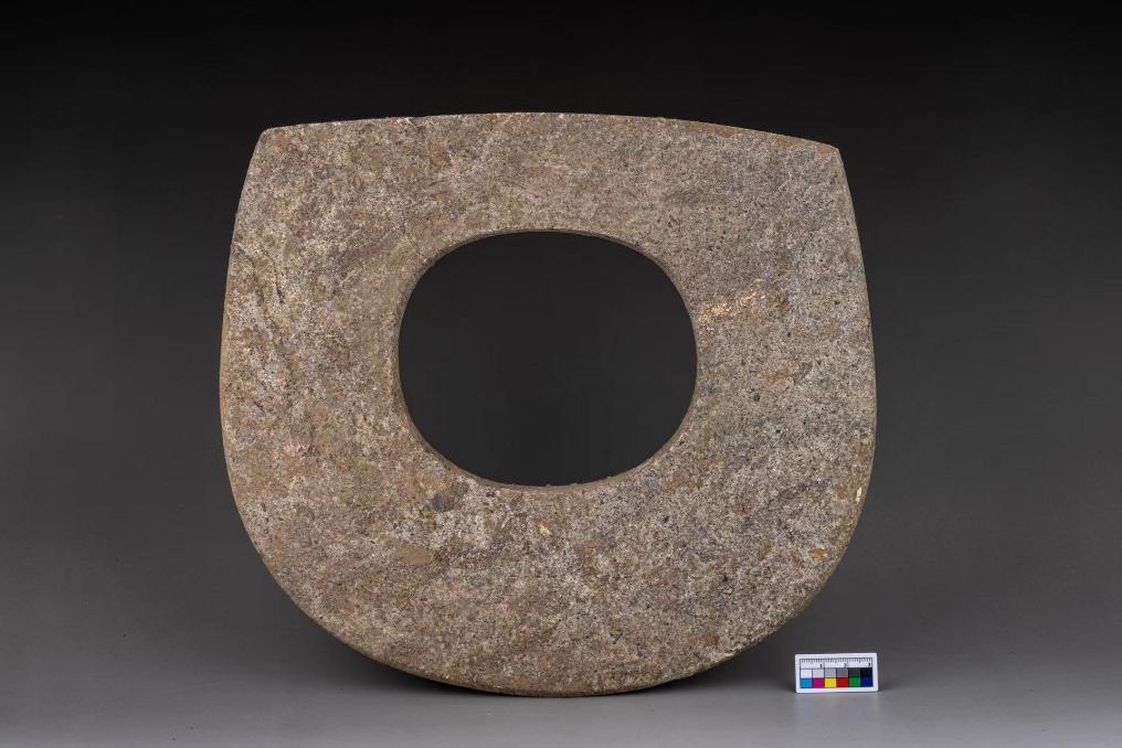 三星村遺址出土的大穿孔石鉞,是迄今發(fā)現(xiàn)的中國(guó)史前保存完好的最大石鉞。 (受訪者供圖)