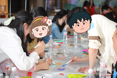 青年男女分組參加繪畫(huà)活動(dòng)。