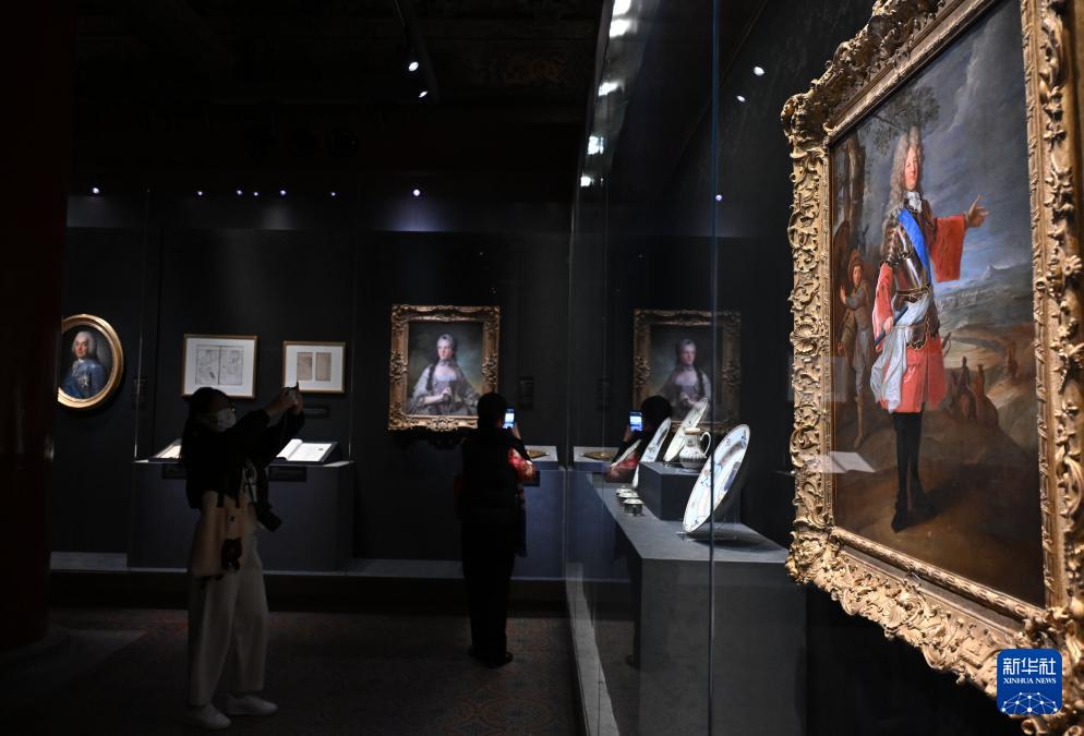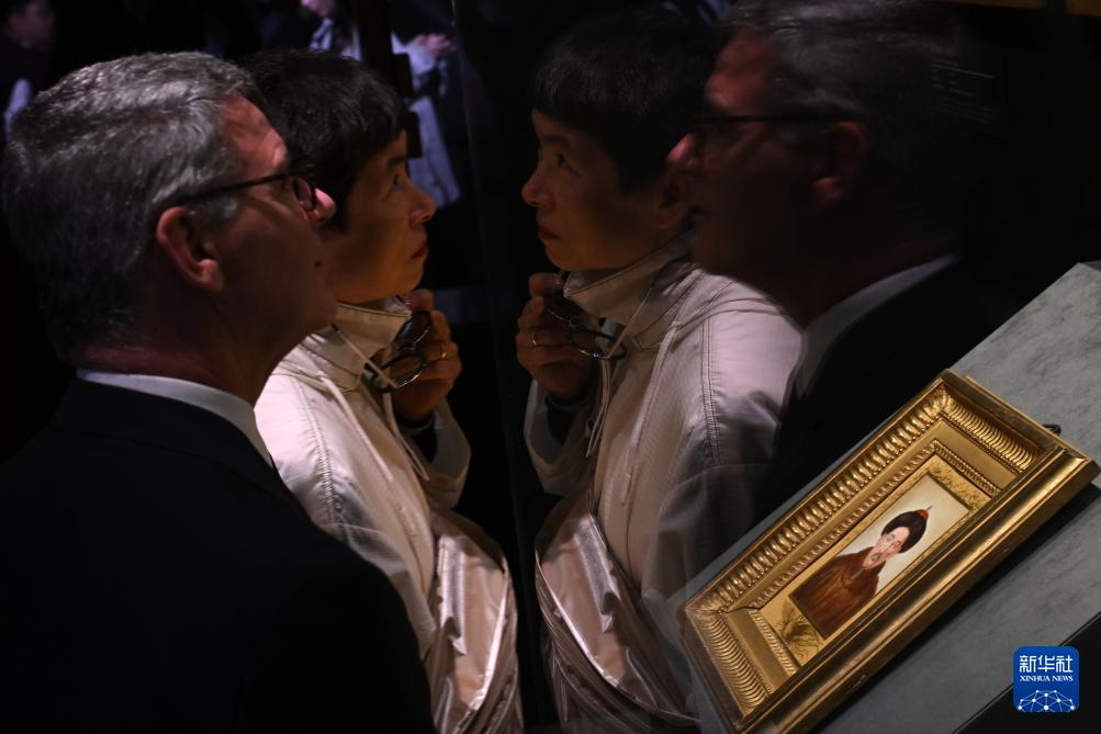 4月1日,觀眾參觀凡爾賽宮收藏的乾隆皇帝像瓷版畫。
