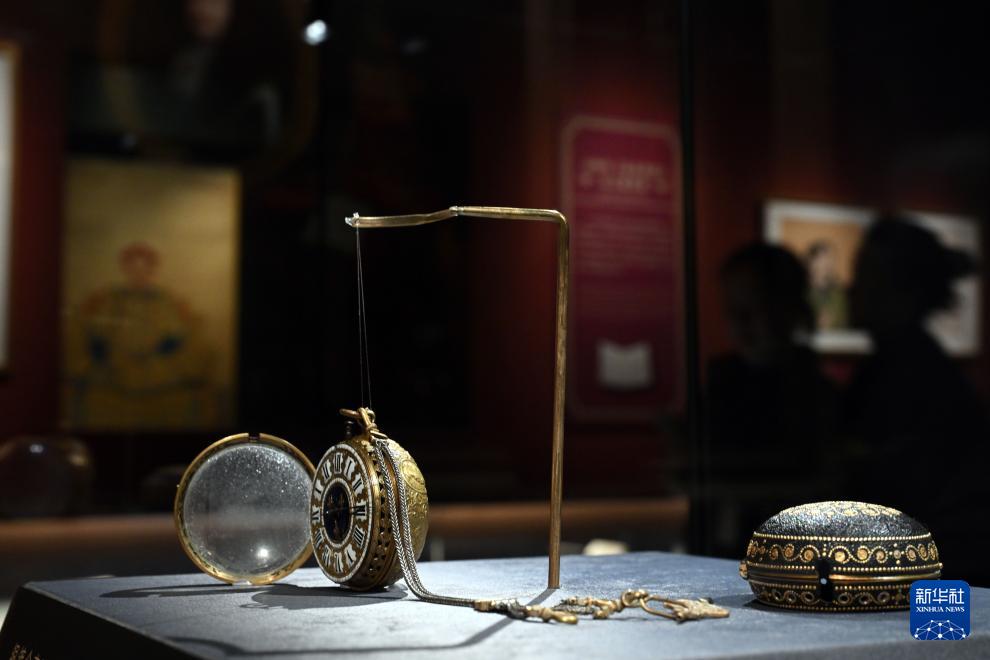 這是展出的故宮博物院藏銅鍍金殼開光人物像懷表(4月1日攝)。