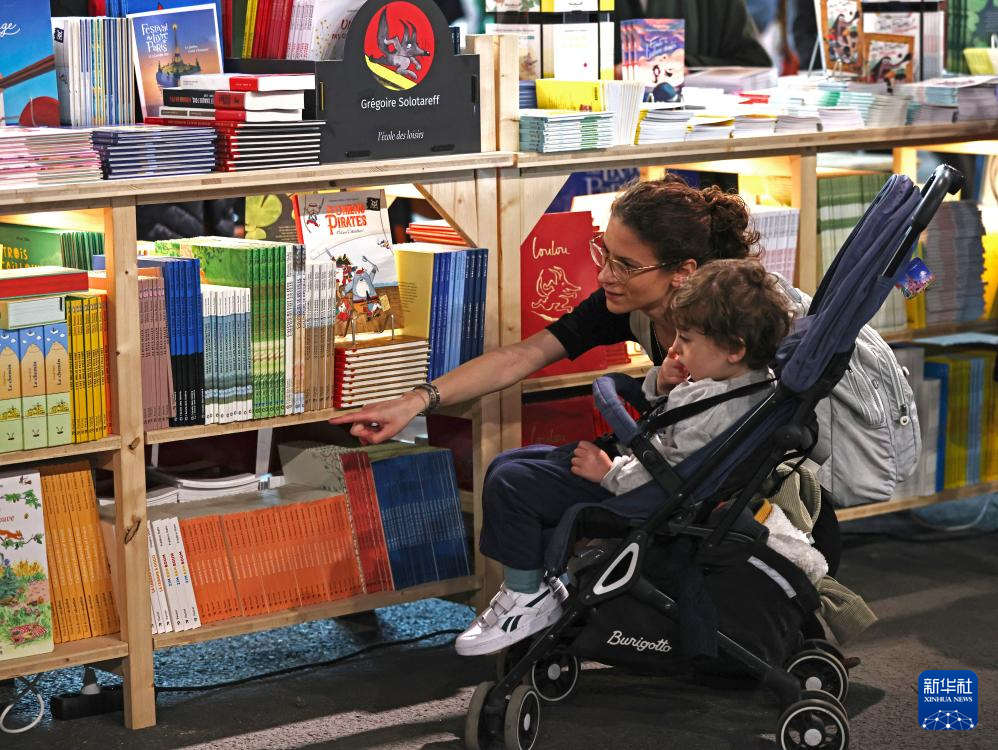 4月12日,人們在法國巴黎臨時大皇宮舉行的2024巴黎書展上參觀。