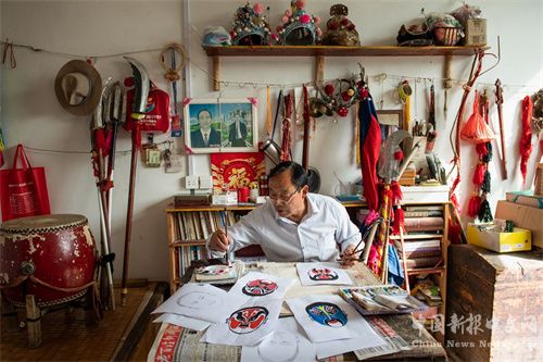 天柱縣渡馬鎮(zhèn)小學(xué)少年宮侗戲班戲師在畫臉譜