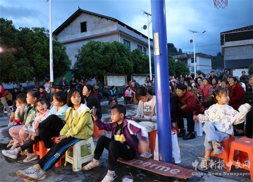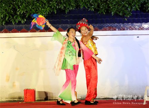 4月16日晚,文藝隊(duì)在湖南省保靖縣清水坪鎮(zhèn)黃連村為村民表演文藝節(jié)目。連日來,該鎮(zhèn)文體廣電服務(wù)站與三區(qū)人才聯(lián)合開展送戲下鄉(xiāng)活動(dòng),用群眾喜聞樂見的形式宣傳黨的方針政策 ,讓偏遠(yuǎn)山區(qū)的農(nóng)民在家門口欣賞到豐富多彩的文藝節(jié)目,助力鄉(xiāng)村文化振興 。(俞采華 吳大清)