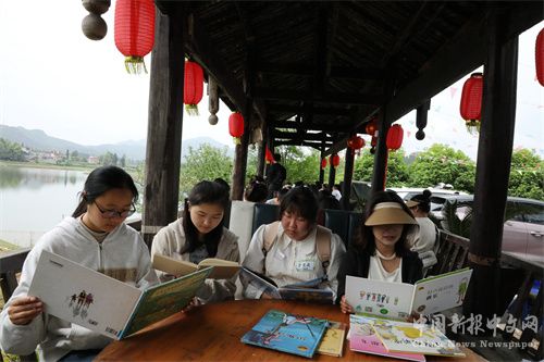 4月21日,教師在湖南省保靖縣遷陵鎮(zhèn)的戶外開展讀書活動。“世界讀書日”將至,北京桂馨基金會組織保靖縣及周邊地區(qū)的部分青年教師開展戶外讀書及拓展活動,教師們讀繪本,在風(fēng)箏上手繪繪本故事、放風(fēng)箏,開闊閱讀視野,分享閱讀快樂。(俞采華)