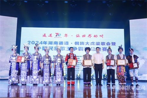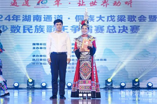 4月24日,2024年湖南通道•侗族大戊梁歌會(huì)暨少數(shù)民族歌王爭(zhēng)霸賽總決賽在湖南省通道侗族自治縣民族劇院落下帷幕,13名選手經(jīng)過現(xiàn)場(chǎng)角逐,來自通道縣的歌手楊團(tuán)花技?jí)喝盒?,問鼎總決賽“少數(shù)民族歌王”,選手鄧施齊獲得一等獎(jiǎng)、選手王亞麗、蘇成獲二等獎(jiǎng),選手楊木春、吳火霞、耿成托獲三等獎(jiǎng)。