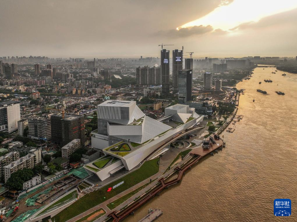 4月27日拍攝的白鵝潭大灣區(qū)藝術(shù)中心(無人機(jī)照片)。