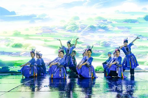 晚會在歌舞《愛滿苗鄉(xiāng)“侗心弦”》中拉開帷幕,共分序篇、巫儺情緣、非遺潮韻、大美綏寧四個篇章?!稇蛱鴥谩贰端陌饲?楊金花》《苗家趕秋》等融舞蹈、戲曲、情景再現(xiàn)等于一體的節(jié)目,多角度展現(xiàn)了綏寧深厚的文化底蘊和濃郁的民俗風(fēng)情,讓觀眾盡享神奇綠洲多元文化交融的非凡魅力。