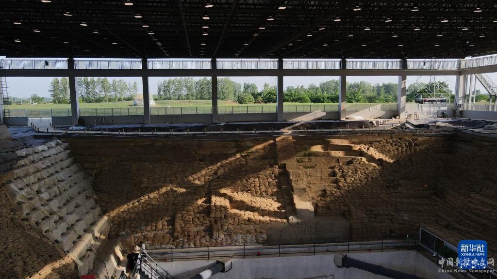 5月20日拍攝的武王墩墓考古發(fā)掘現(xiàn)場(chǎng)(無(wú)人機(jī)照片)。