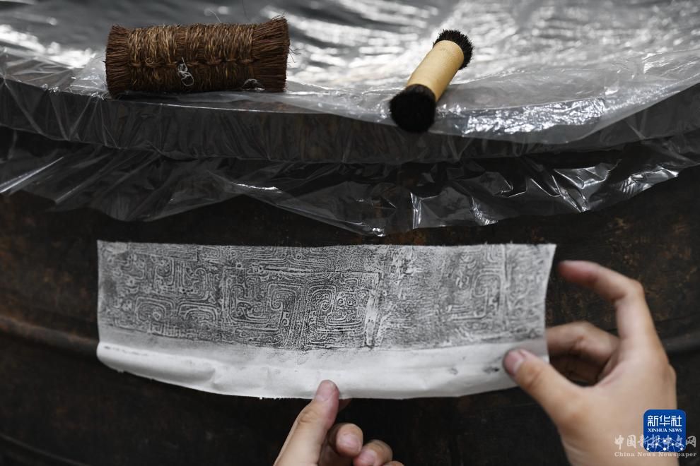5月20日,考古人員在武王墩墓考古發(fā)掘現(xiàn)場(chǎng)清理出土文物。