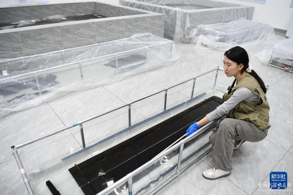 5月20日,考古人員在武王墩考古實(shí)驗(yàn)室進(jìn)行文物保護(hù)工作。