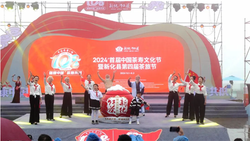 6月1號(hào),首屆中國(guó)茶壽文化節(jié)暨新化第四屆茶旅文化節(jié)在新化縣奉家鎮(zhèn)渠江源舉行。中央候補(bǔ)委員、中國(guó)工程院院士、湖南師范大學(xué)校長(zhǎng)劉仲華,全國(guó)老齡辦原副主任、直屬機(jī)關(guān)黨委書記閆青春,中國(guó)書法家協(xié)會(huì)副主席鄢福初,中國(guó)國(guó)際茶文化研究會(huì)聯(lián)絡(luò)部副部長(zhǎng)、浙江省外事辦二級(jí)巡視員戴愛萍,中華全國(guó)供銷合作總社杭州茶葉研究院副院長(zhǎng)、國(guó)家茶葉質(zhì)量檢驗(yàn)檢測(cè)中心主任陸小磊,湖南省農(nóng)業(yè)農(nóng)村廳二級(jí)巡視員何德佳,長(zhǎng)沙市政府原市長(zhǎng)杜遠(yuǎn)明等相關(guān)部門領(lǐng)導(dǎo),西非達(dá)(中國(guó))和達(dá)馬斯(幾內(nèi)亞)進(jìn)出口貿(mào)易有限公司總經(jīng)理穆薩、剛果金SHABA INDUSTRY副總經(jīng)理KAD NAOMIE KAYAL等國(guó)際客商,湖南省茶業(yè)協(xié)會(huì)會(huì)長(zhǎng)周重旺,衡陽市茶業(yè)協(xié)會(huì)書記、二級(jí)巡視員王美志,郴州職業(yè)技術(shù)學(xué)院原黨委書記、郴州市茶業(yè)協(xié)會(huì)會(huì)長(zhǎng)羅海運(yùn),省政府參事、湖南農(nóng)大教授徐仲溪,湖南省紅茶產(chǎn)業(yè)發(fā)展促進(jìn)會(huì)會(huì)長(zhǎng)伍崇岳等行業(yè)專家領(lǐng)導(dǎo),常德市茶葉辦主任賀立、張家界市茶葉辦主任馬忠全新等全省茶葉