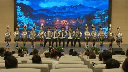 開班儀式上,貴州省社科院、貴州省人大常委會(huì)相關(guān)領(lǐng)導(dǎo)分別就侗族大歌的教育功能與侗歌的傳承發(fā)表講話。有關(guān)領(lǐng)導(dǎo)、專家學(xué)者及培訓(xùn)學(xué)員出席開班儀式。培訓(xùn)班開班儀式在貴州民族大學(xué)音樂(lè)舞蹈學(xué)院帶來(lái)的侗族大歌《天地人間充滿愛(ài)》與侗族琵琶歌《歌唱心聲話情誼》展演中落下帷幕。(馬新穎 姚進(jìn)忠)