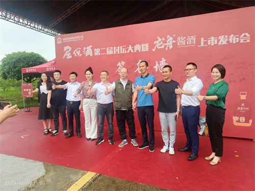 上午十時,在來自岳陽市餐協(xié)等全國各地千名嘉賓的見證下,非遺傳承人虔誠的完成抬酒、倒酒、封口、系繩、封條等工序,正式封壇入窖封藏?,F(xiàn)場還舉行了助殘幫扶愛心活動及龍舟醬酒上市發(fā)布會。