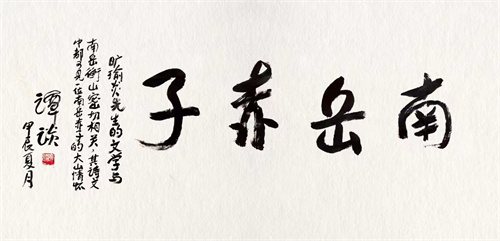 6月14日,中國作家協(xié)會原副主席、湖南省文聯(lián)名譽主席譚談,聽聞衡陽曠瑜炎老先生以82歲高齡加入中國作協(xié),特親筆題匾“南岳赤子”以贈,款署:“曠瑜炎先生的文學與南岳衡山密切相關(guān),其詩文中都可見一位南岳赤子的大山情懷。”