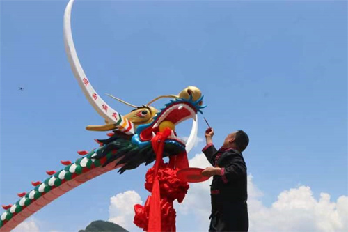 開(kāi)幕儀式結(jié)束后,依照當(dāng)?shù)孛袼祝M(jìn)行傳統(tǒng)祭祀儀式,備受關(guān)注的98.8米長(zhǎng)木龍舟在這里完成龍頭點(diǎn)睛,寓意平安吉祥。