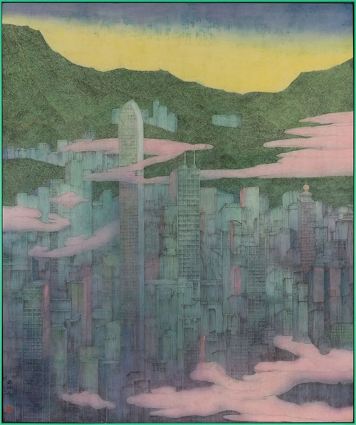 賀海鋒寫生多集中于家鄉(xiāng)湖湘山水,運(yùn)用披麻皴長短相間的線條,營造出蒼茫萬頃的生命境象。其城市山水畫把幾何形狀的建筑群體,用傳統(tǒng)的青綠山水畫法加以升華,形成群山如屏的山水氣象,削弱了千篇一律水泥森林的壓抑窒息感,張揚(yáng)了回歸自然盡享“臥游之樂”的精神自由。其作品善于跨界吸收,以繁求簡,重感受而尚提煉,妙在直覺與抽象之間,以別具姿態(tài)的筆墨生發(fā)出空間、造型與景觀,把現(xiàn)代視覺感受與傳統(tǒng)文化精神相結(jié)合,誠如薛永年先生所說:“他有不斷突破自我的勇氣,有湘人敢為天下先的基因。”