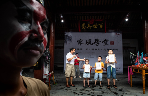 天柱侗戲始于明末清初、陽戲始于清朝道光年間,皆是當(dāng)?shù)囟弊迦嗣裨陂L期勞動(dòng)生活中逐漸發(fā)展形成的藝術(shù)形式,以地方侗話唱念為主,經(jīng)過幾百年沉淀,十分富有侗族生活氣息,侗戲2019年被列入省級非物質(zhì)文化遺產(chǎn)代表性項(xiàng)目名錄,2023年陽戲被列入國家級非物質(zhì)文化遺產(chǎn)代表性項(xiàng)目名錄,而天柱縣家祠眾多且文化豐富,被譽(yù)為“西南地區(qū)家祠博物館”,家祠里有戲臺(tái),因此在家祠中排戲、講戲、練戲成為了當(dāng)?shù)厝嗣袢罕娤猜剺芬姷膱鼍?。近年來,天柱縣通過充分利用豐富的家祠資源,打造“古祠新韻·人文天柱”的品牌,創(chuàng)新探索“古祠+戲曲”模式,開展了一節(jié)節(jié)戲曲課堂,通過戲曲理論知識(shí)傳授、選段教學(xué)、表演實(shí)踐、劇目欣賞等內(nèi)容,把戲劇變成學(xué)生們暑假生活的“玩具”和“教科書”,拉近學(xué)生們和戲曲的距離,激發(fā)學(xué)生們學(xué)戲的熱情,讓古戲重?zé)ü獠?、代代相傳。(圖/金可文 文/楊湘)